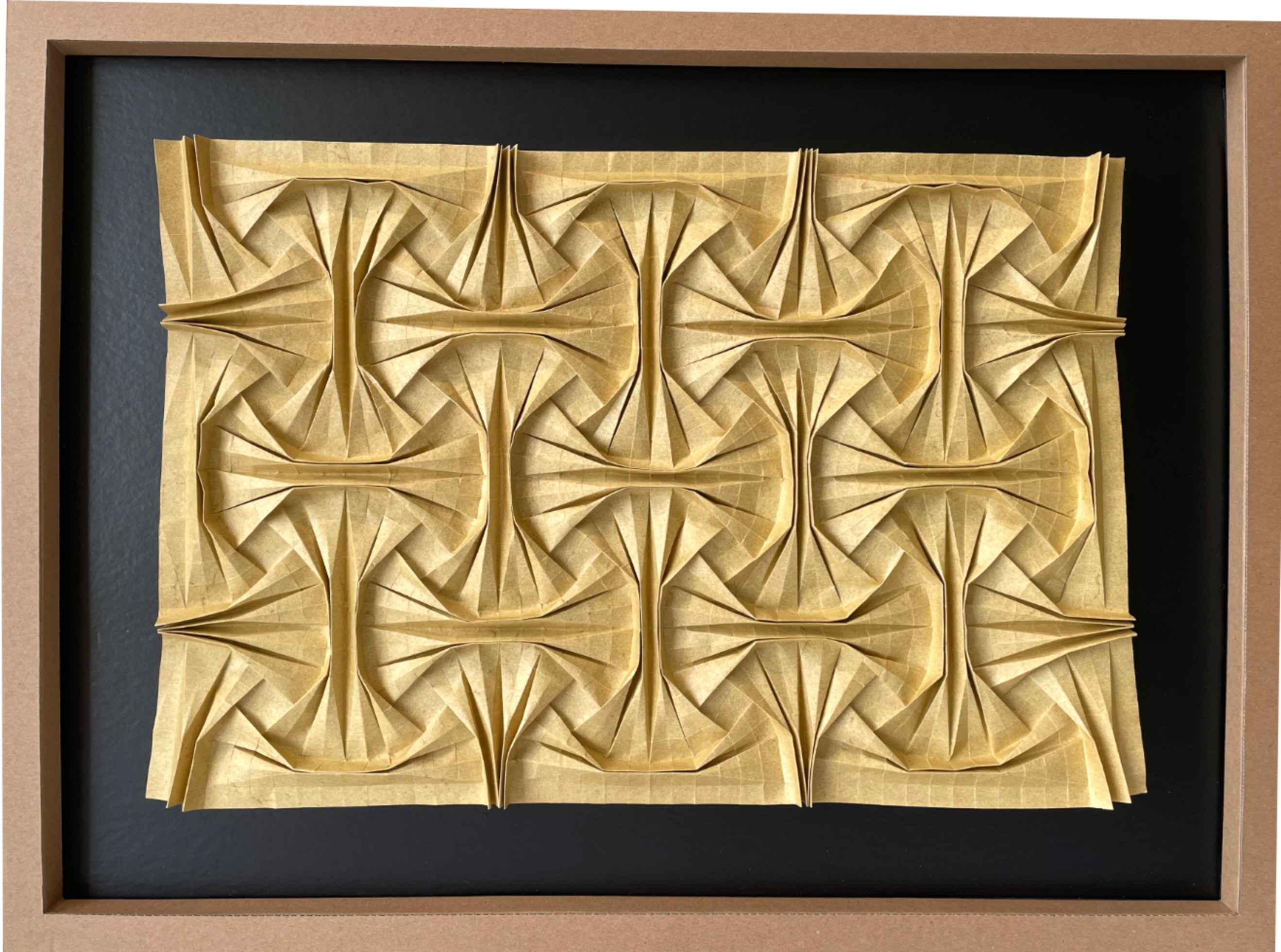 All designs above (except for the white herringbone) by origami artist Ilan Garibi. I thank him for giving me permissions for using his crease patterns and designs for Morning Dew’s Exhibition at the Substation in Singapore, May 1st 2021. I use elephant hide papers for the folds, it was a discovery and empowering journey for me to frame up 14 pieces of origami works in a short span of about 3 months. Totally zero experience in folding origami tessellations then.