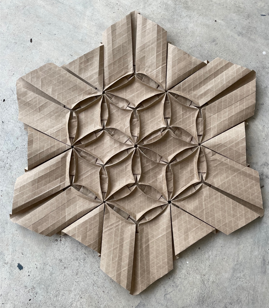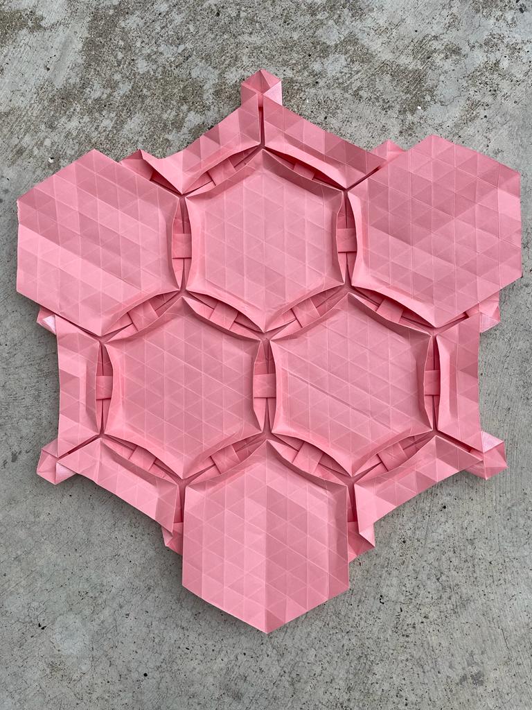 I started learning to fold tessellations in 2021 for my exhibition in SG. I always need to reference to a CP (crease pattern) to fold something out. Its a great feeling to see the outcome but a suppressed feeling not being able to design and produce my own design for folding. Origami at this level is not easy for me to understand to know how to design until today. The experts at MIT know much better. The book: “Six simple twists”, 2nd edition by Benjamin DiLeonardo-Parker that I referenced to taught me how to fold the light pink and brown color flowers from the left. I managed to tweak into the next 2 pictures on the right which were the Seed of Life and Flower of Life. This is a great personal achievement for myself in 2023! 😀